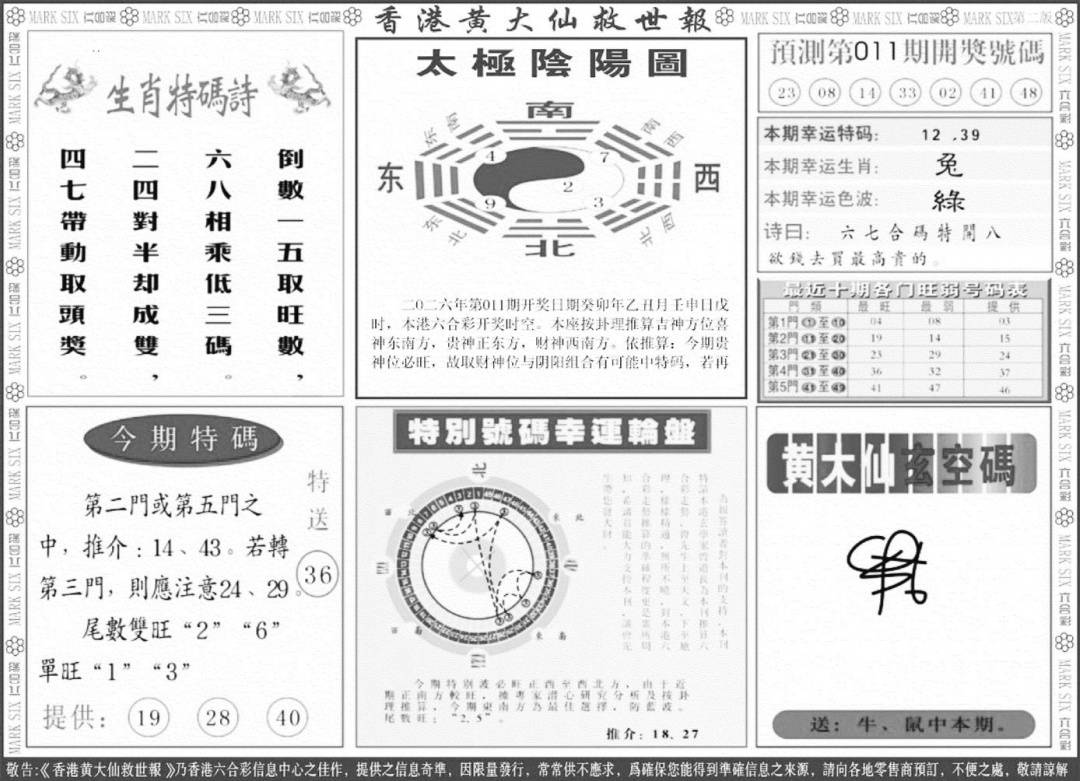 另版黄大仙灵码B
