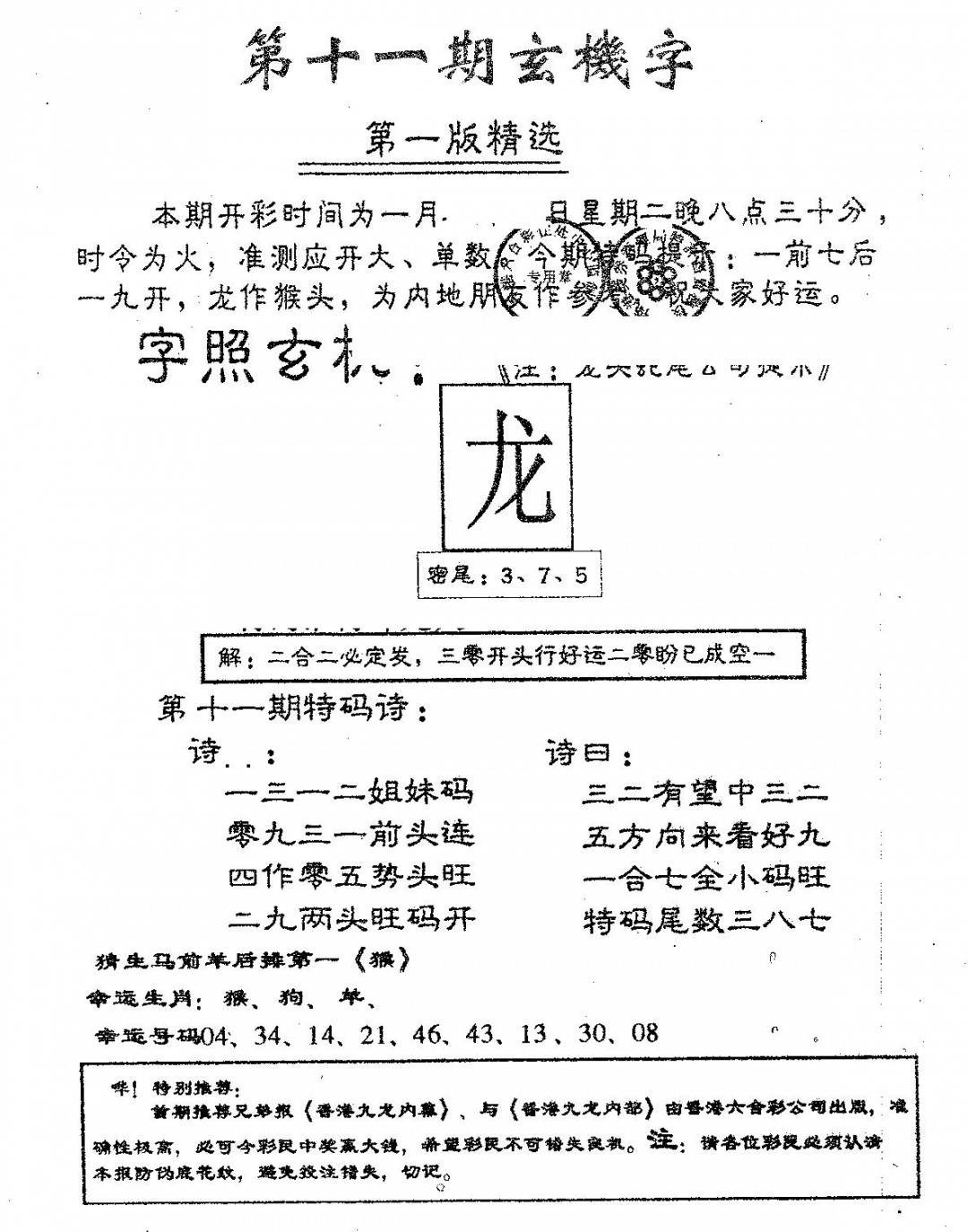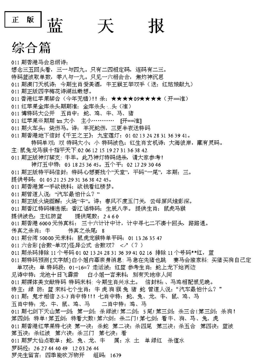 老版天机报