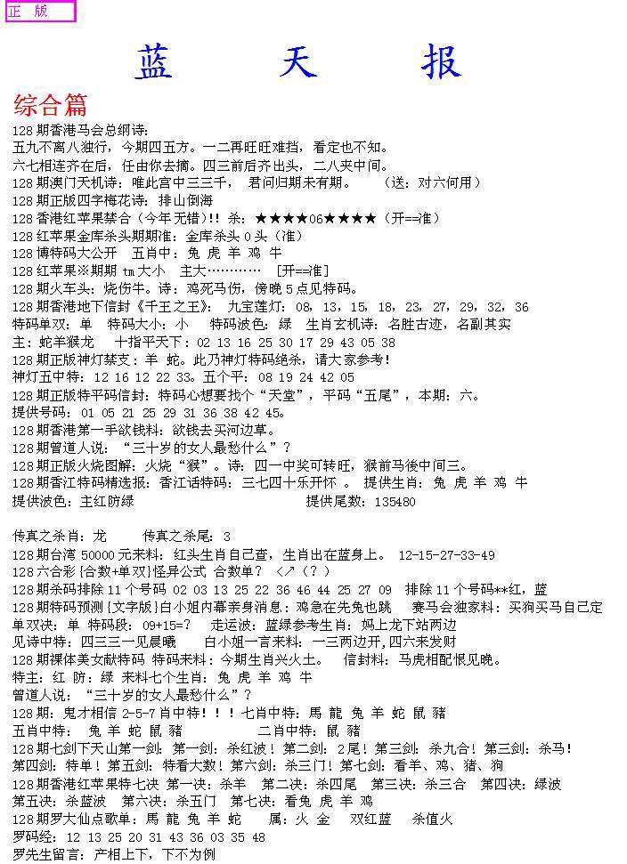 (香港来料)马报
