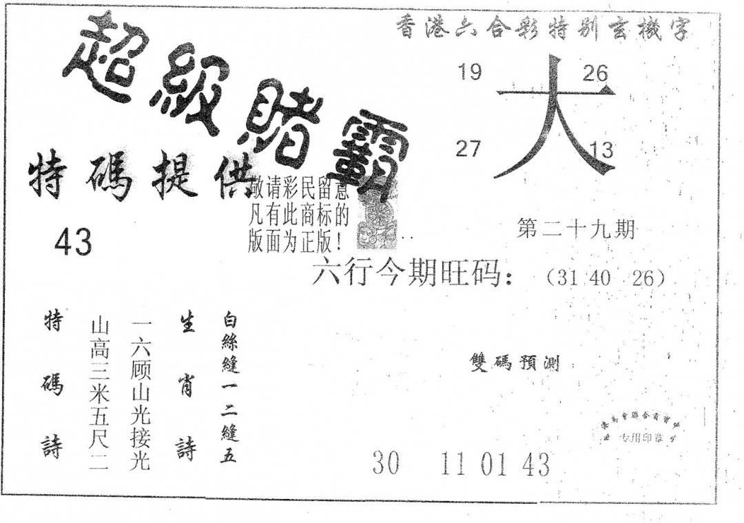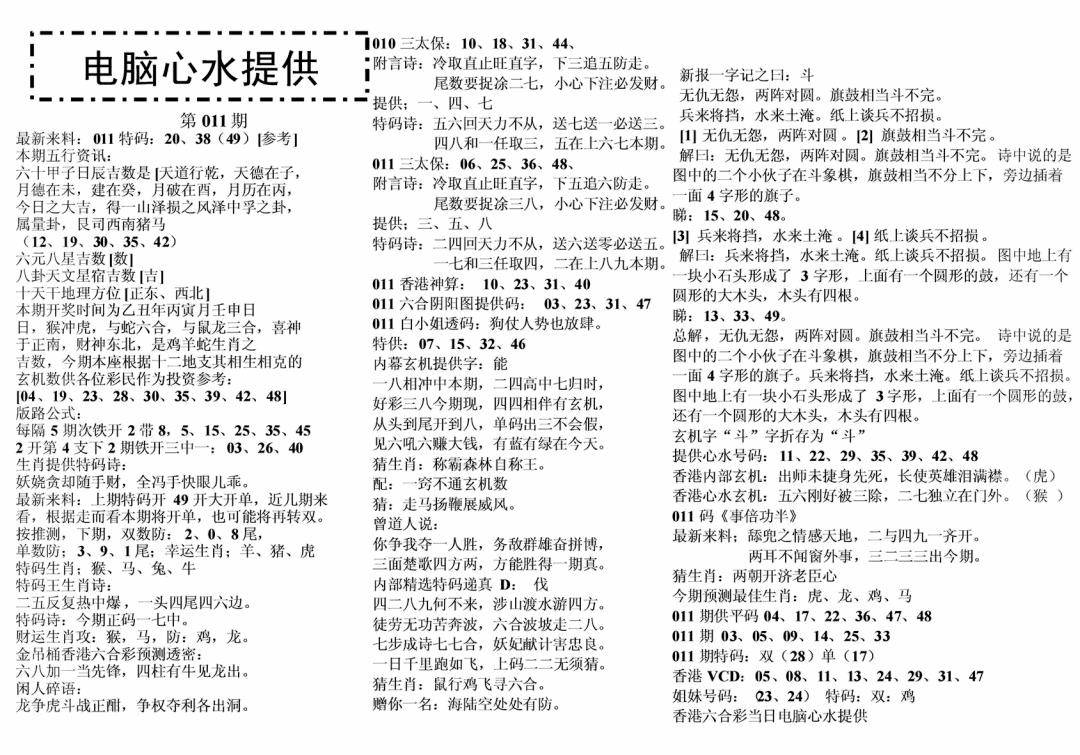 彩卷后庄A(保证香港版)