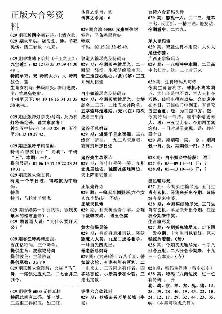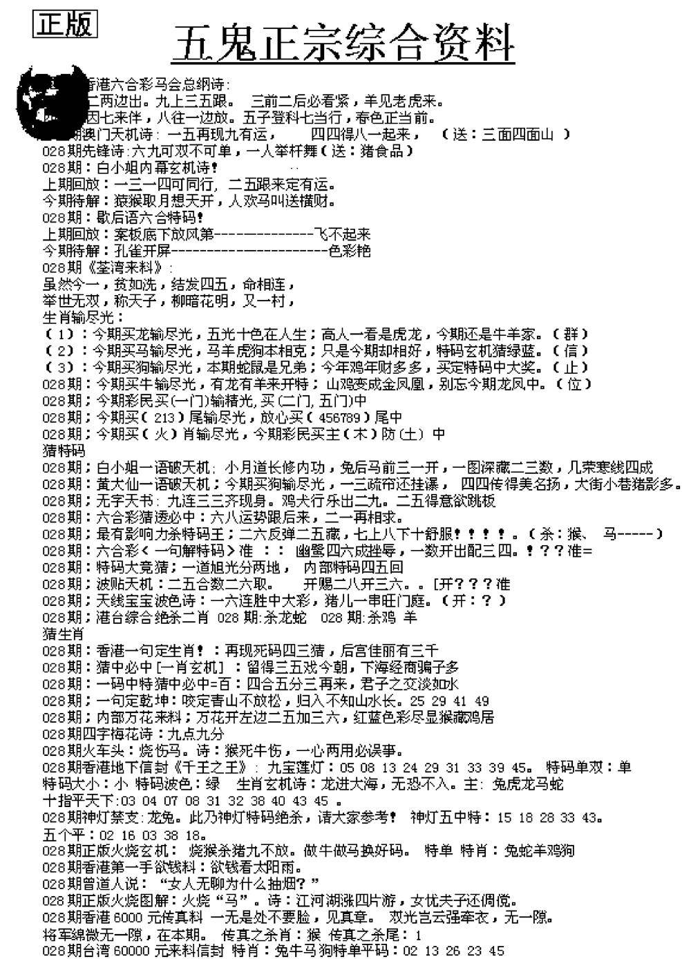 正版六合彩资料B