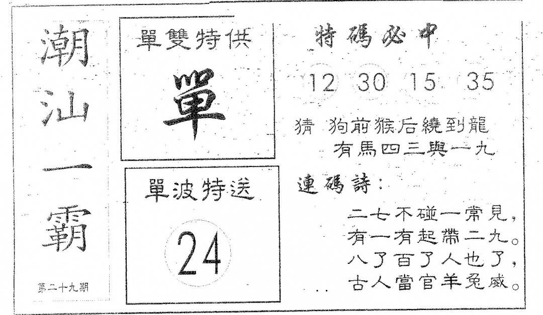 郑小姐特码报A