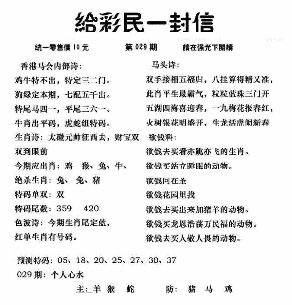心水特码(信封)