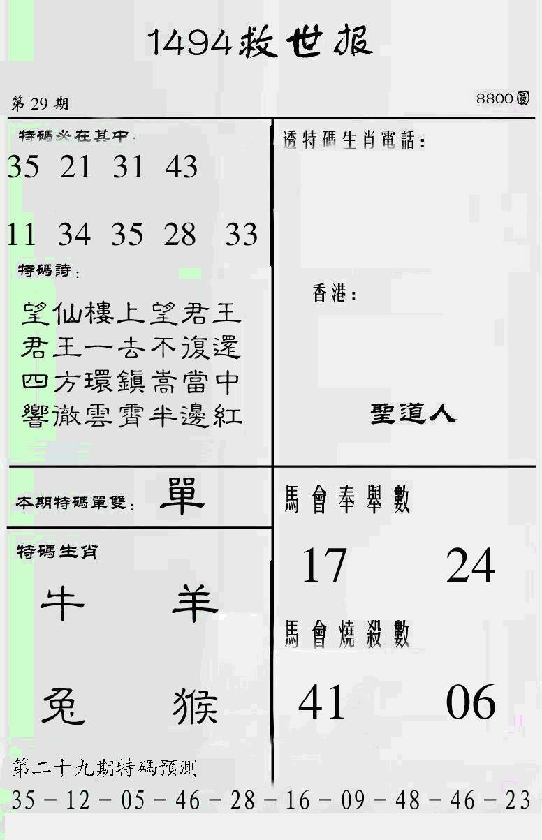 曾道人特码救世报B