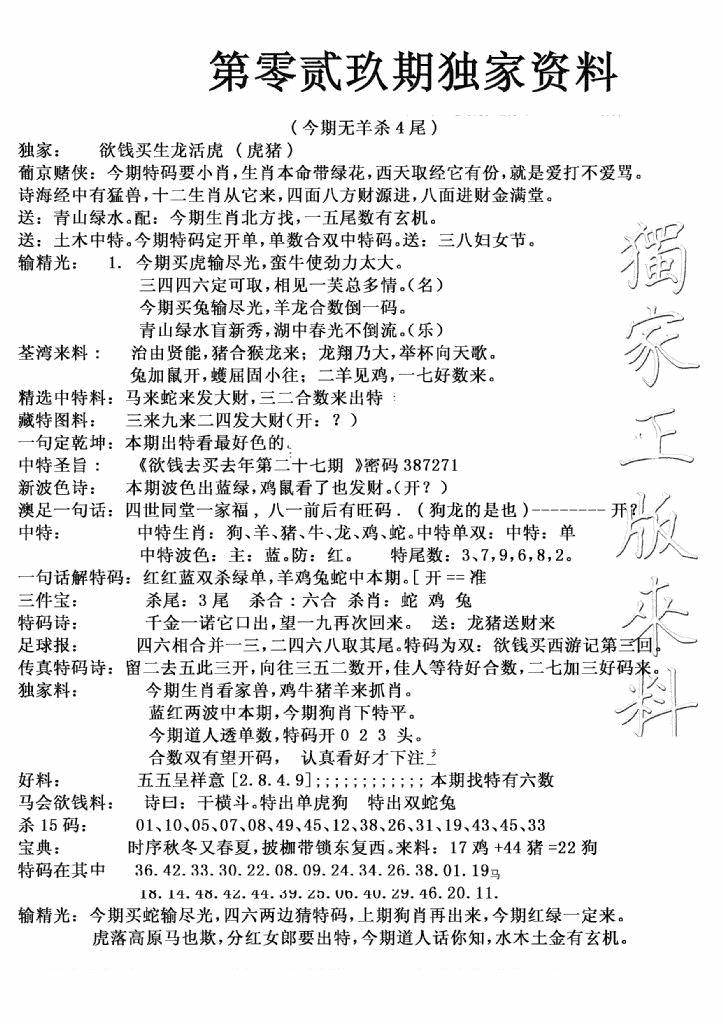 今日抓特码A(正版)