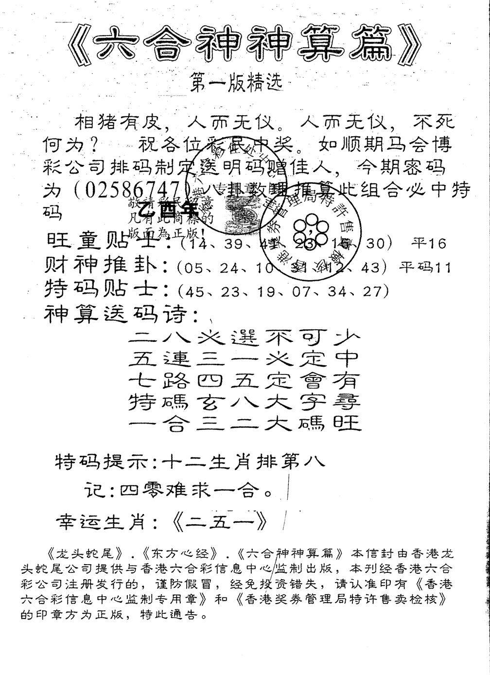 六合神算篇B