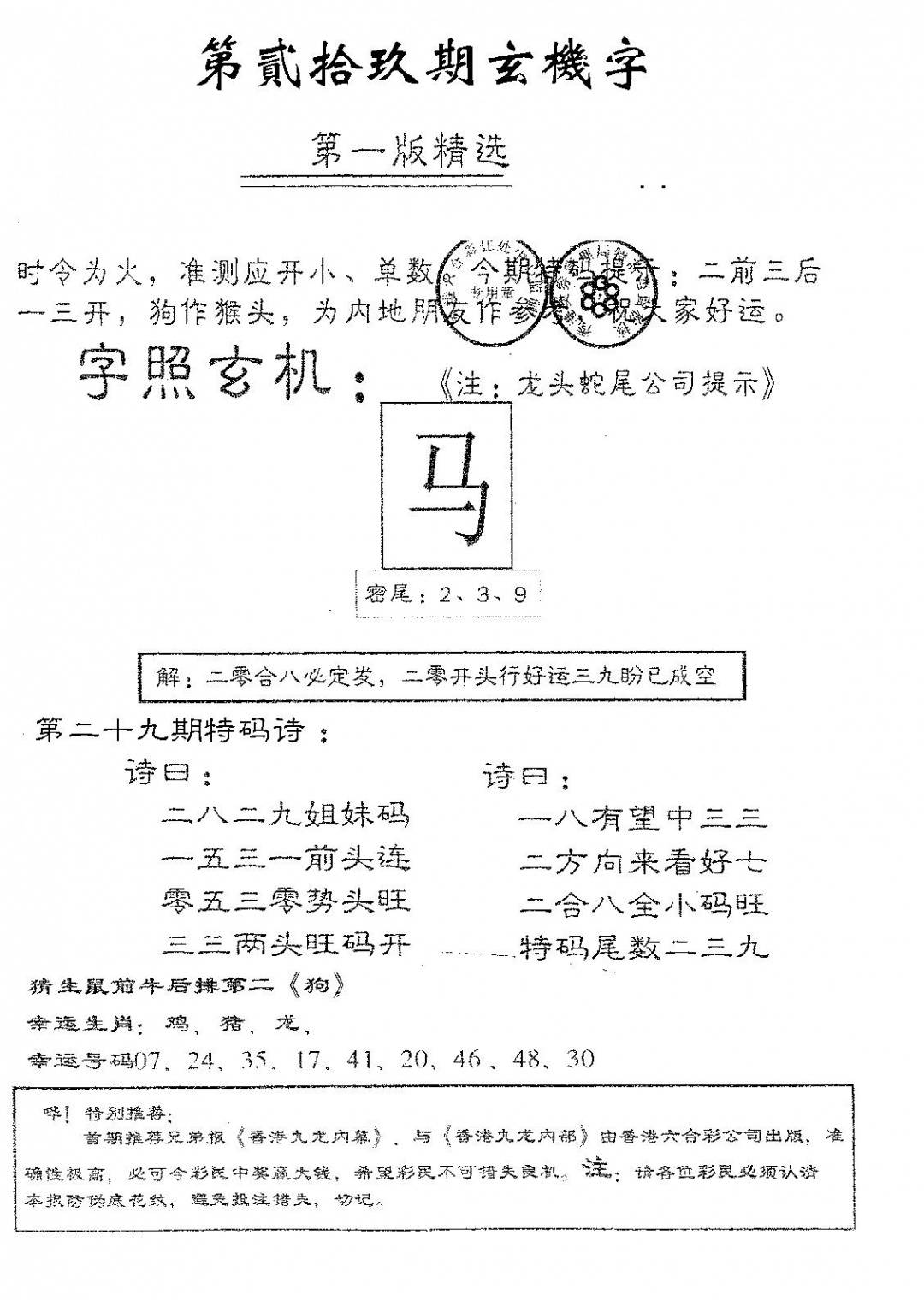 另版一心猜特码