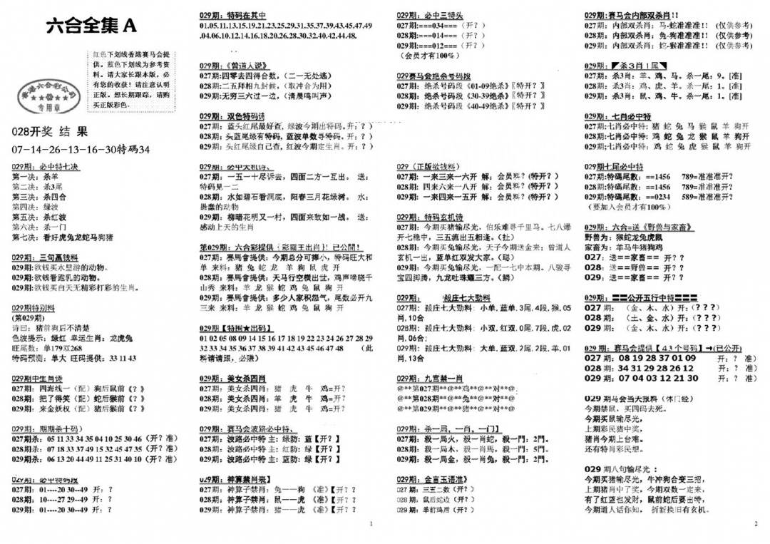 新版内部玄机A