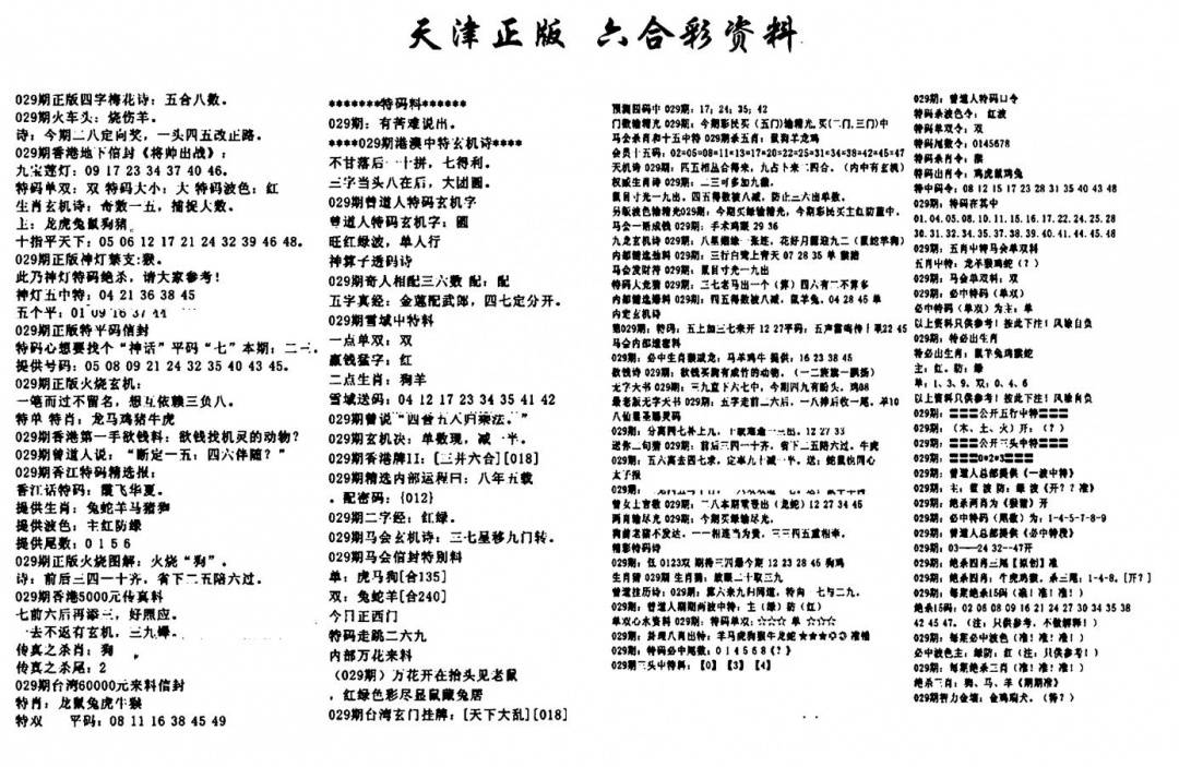 天津正版六合彩资料