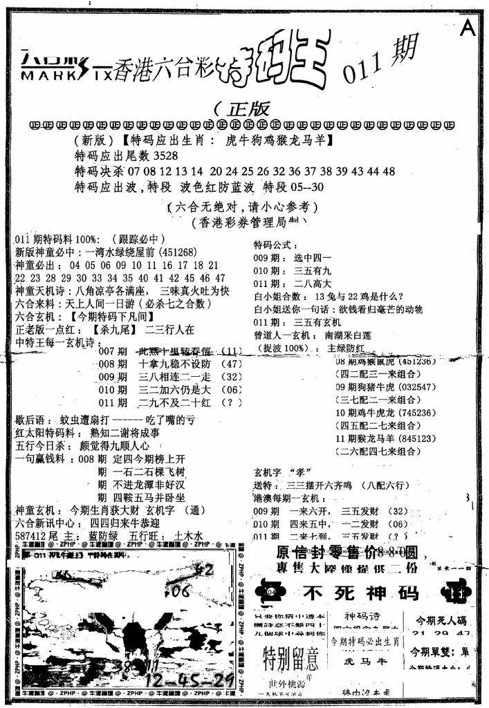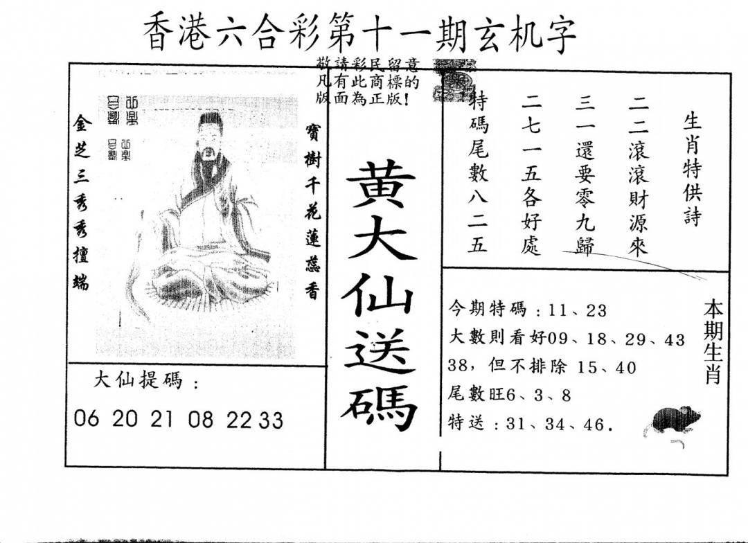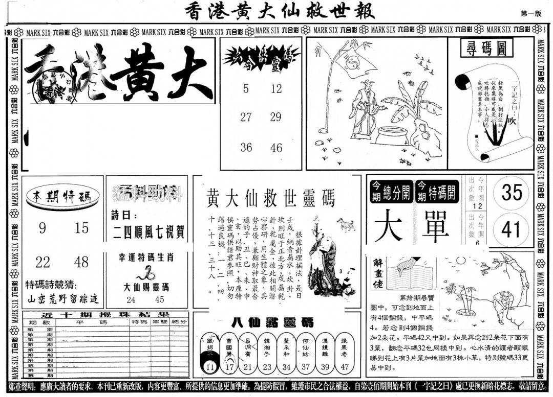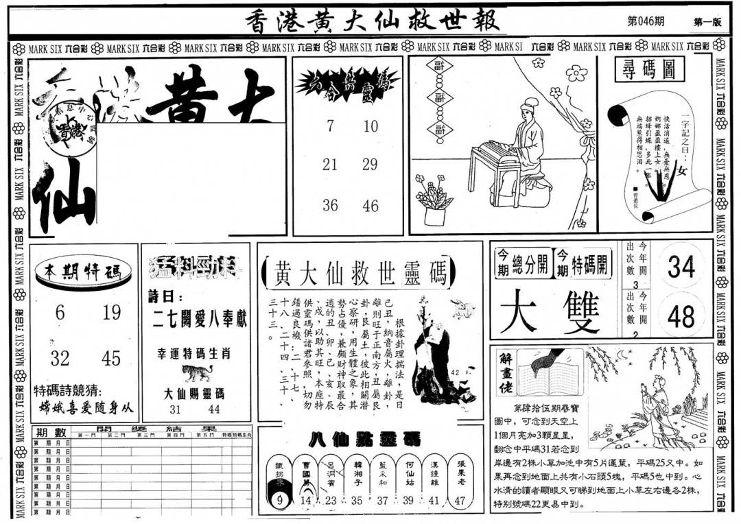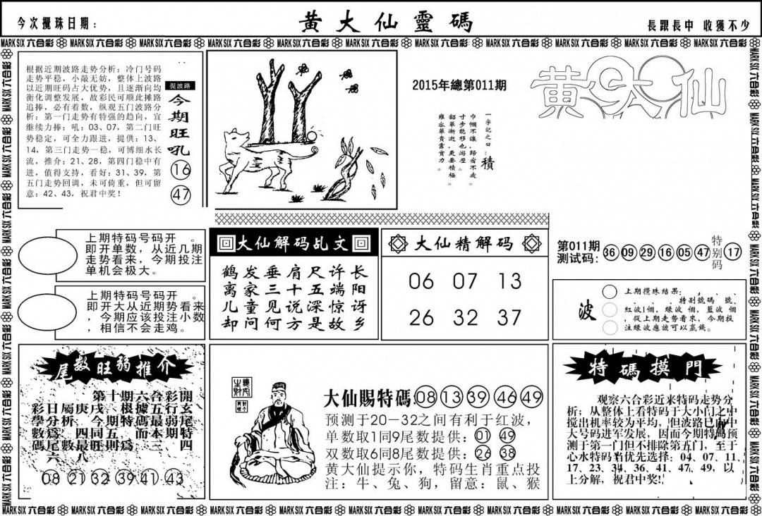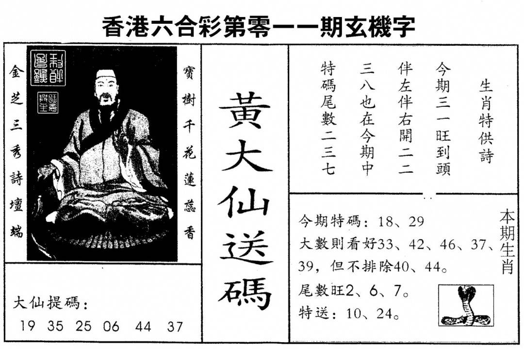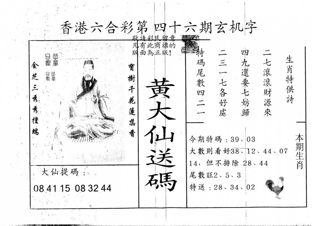 另版黄大仙灵码A
