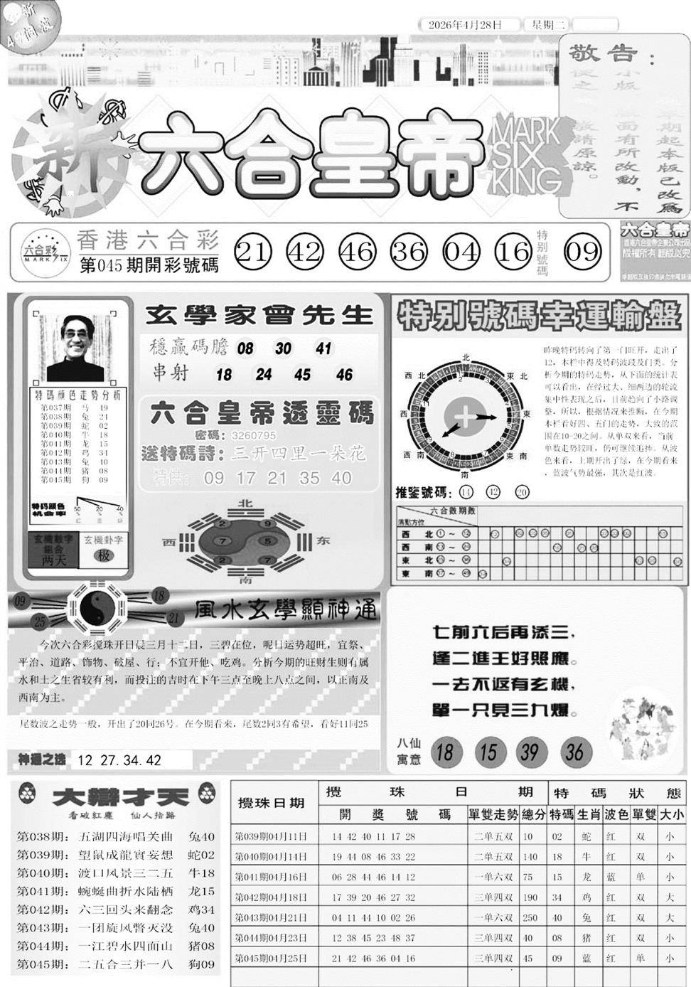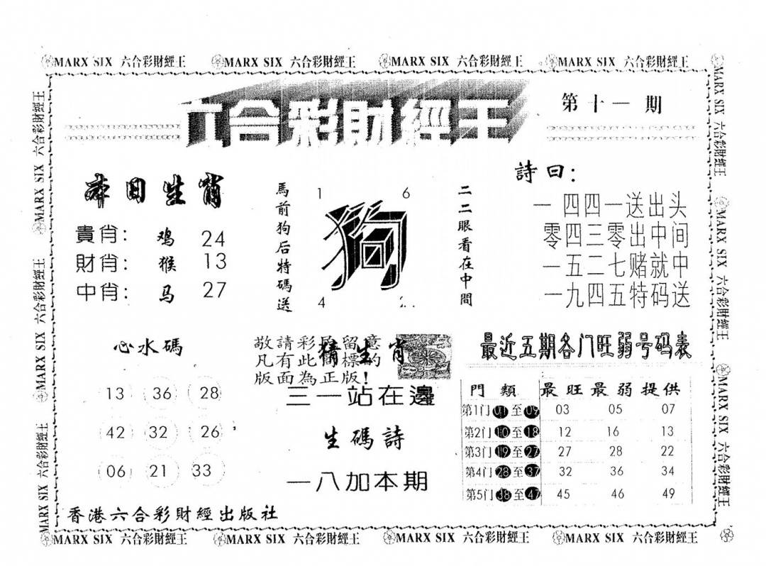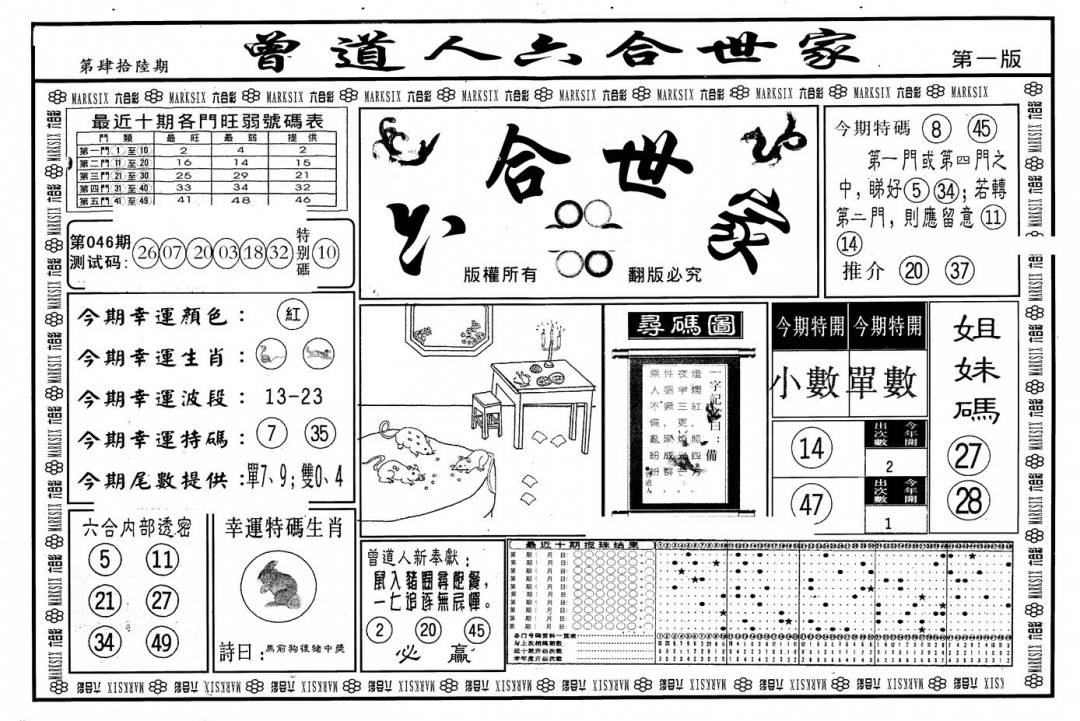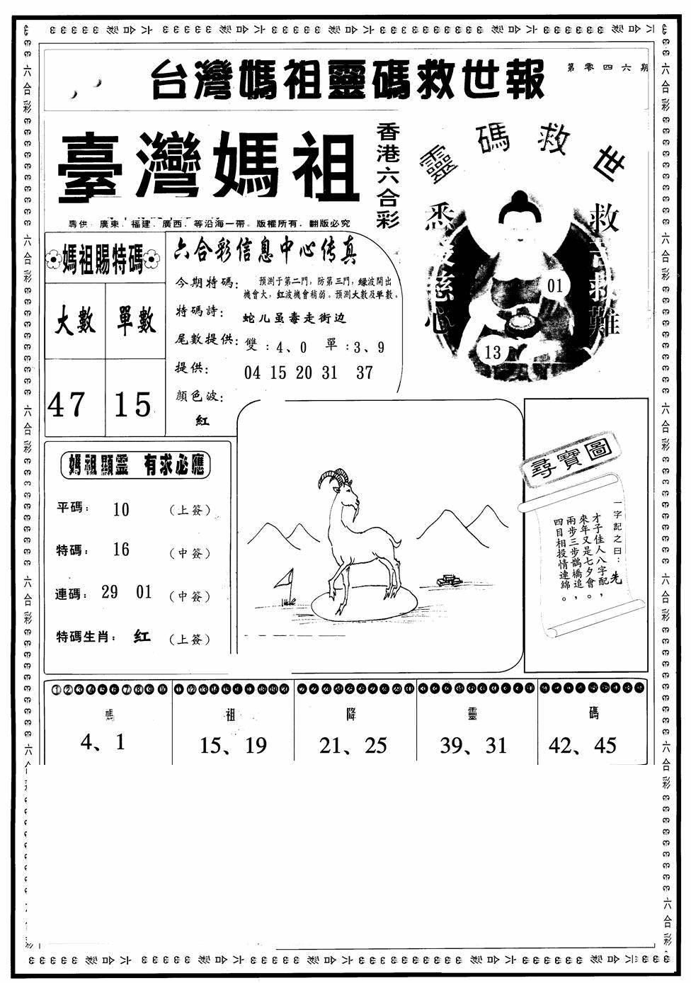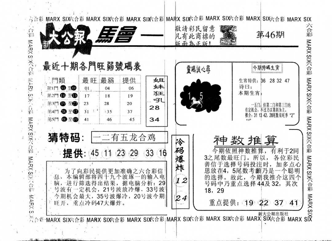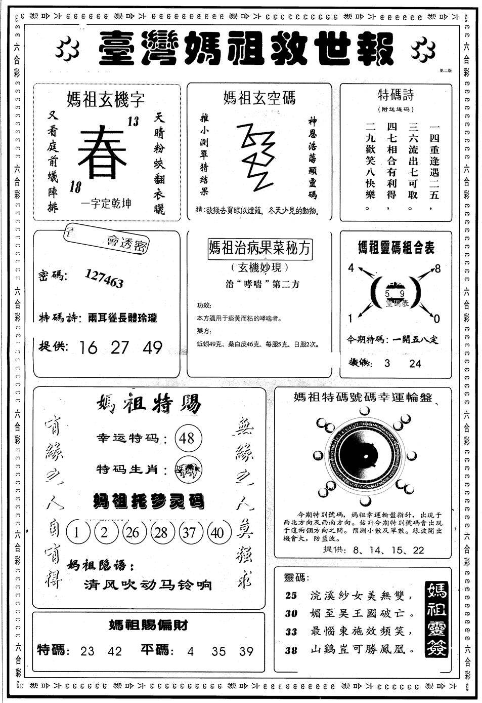 另版黄大仙灵码A
