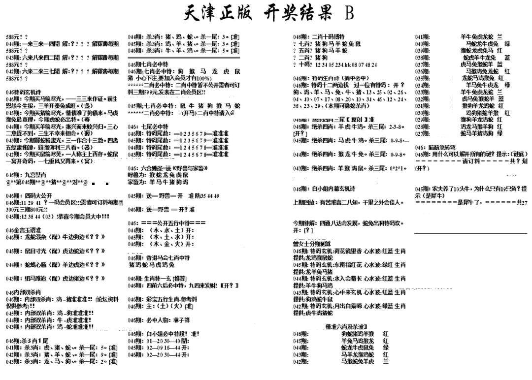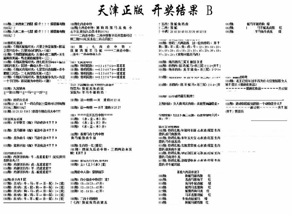 天津正版开奖结果B