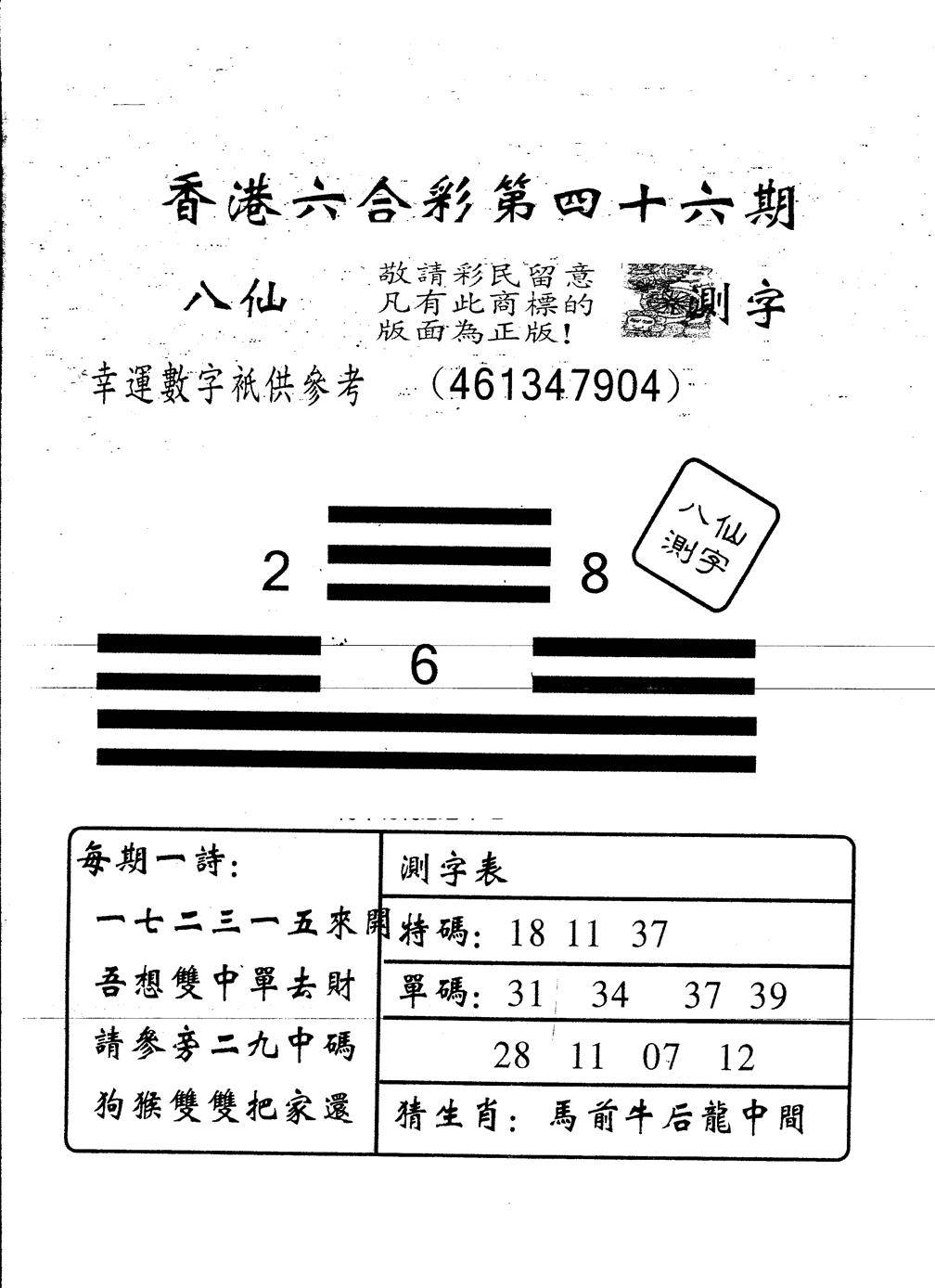 另版八仙测字