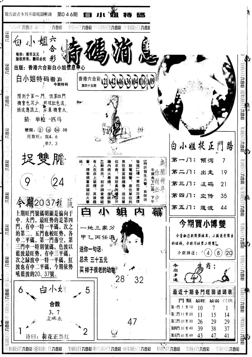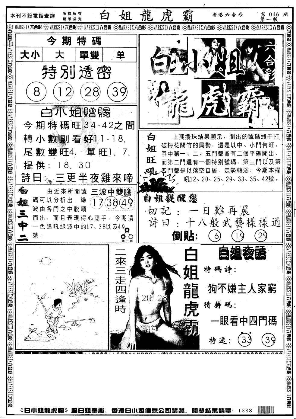 另版白姐特码消息A